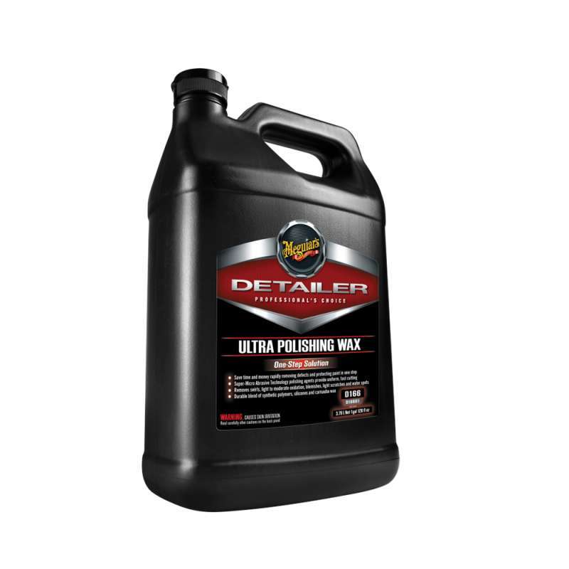 Latest chemistry delivers significant cleaning ability and durable protection in one quick and easy step. Formulated with super-micro abrasive technology polishing agents that provide a uniform fast cutting Meguiars D166 Ultra Polishing Wax will remove swirls light to moderate oxidation and water spots from your vehicles surface in just one application. Meguiars Ultra Polishing Wax D16601 1 Gallon Liquid.