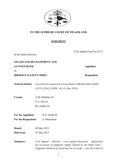 Swazi Bank Vs Bhokile Elliot Shiba Pdf Swazilii